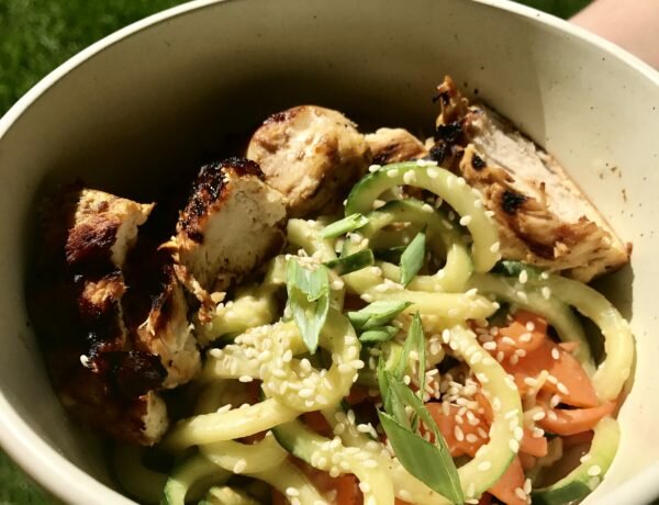 GINGER PEANUT CUCUMBER NOODLES WITH GRILLED CHICKEN