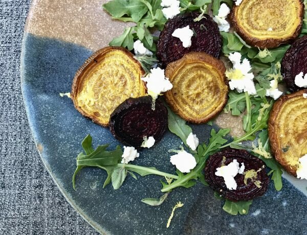 Roasted Beet Avocado and Arugula Salad with Toasted Hazelnuts is made with less than 10…